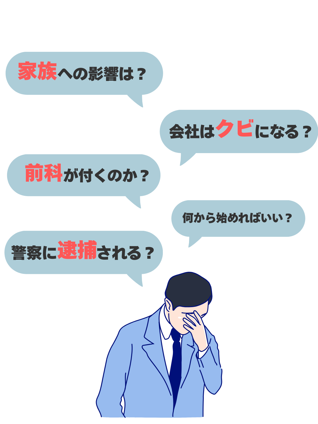 なぜなら、逮捕された方は身柄を拘束されて、日常とは異なる場所に収容され、大きな不安を抱えているからです。 - 取調べの対応に困っている