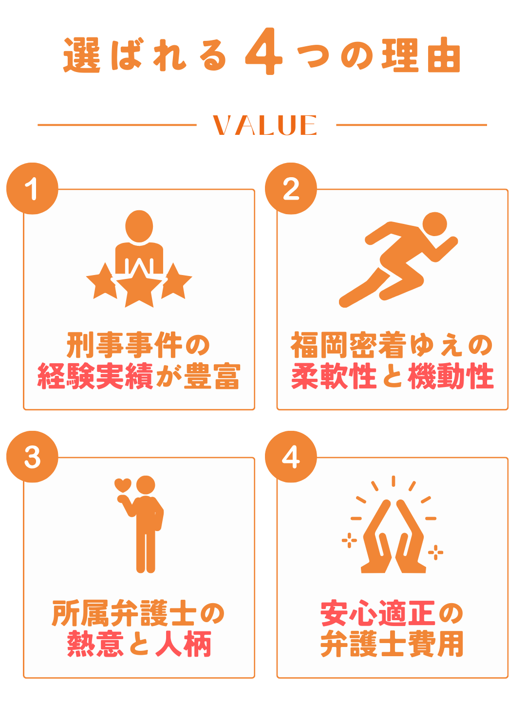 それゆえ、当事務所所属の弁護士は、刑事事件を最も得意としており、刑事事件の実績と経験が豊富です。 - 福岡密着ゆえの柔軟性と機動性