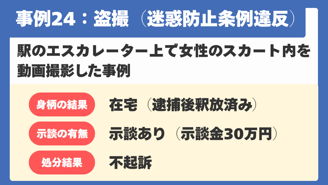 【事例24】駅のエスカレーター上で女性のスカート内を動画撮影した事例