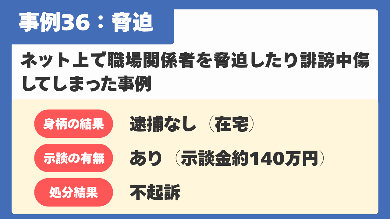 【事例36】ネット上で職場関係者を脅迫したり誹謗中傷してしまった事例