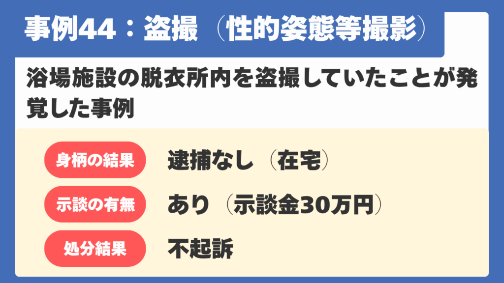 【事例45】ひそかに浴場施設の女性脱衣所を盗撮して複数名被害者がいる事例