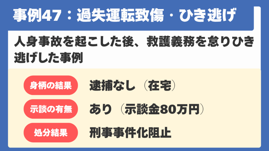 【事例47】人身事故を起こした後、救護義務を怠りひき逃げした事例