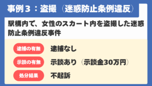 - 迷惑防止条例違反の場合の時効期間は3年です。