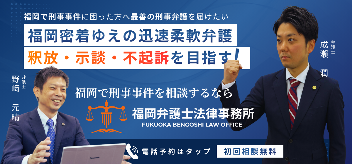 福岡弁護士法律事務所の弁護士は、これまでに多くの刑事事件を解決してきました。初回相談は30分無料ですので、是非ご相談ください。