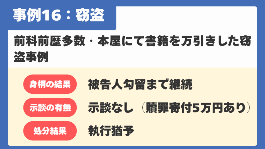 【事例16】前科前歴多数・本屋にて書籍を万引きした窃盗事例